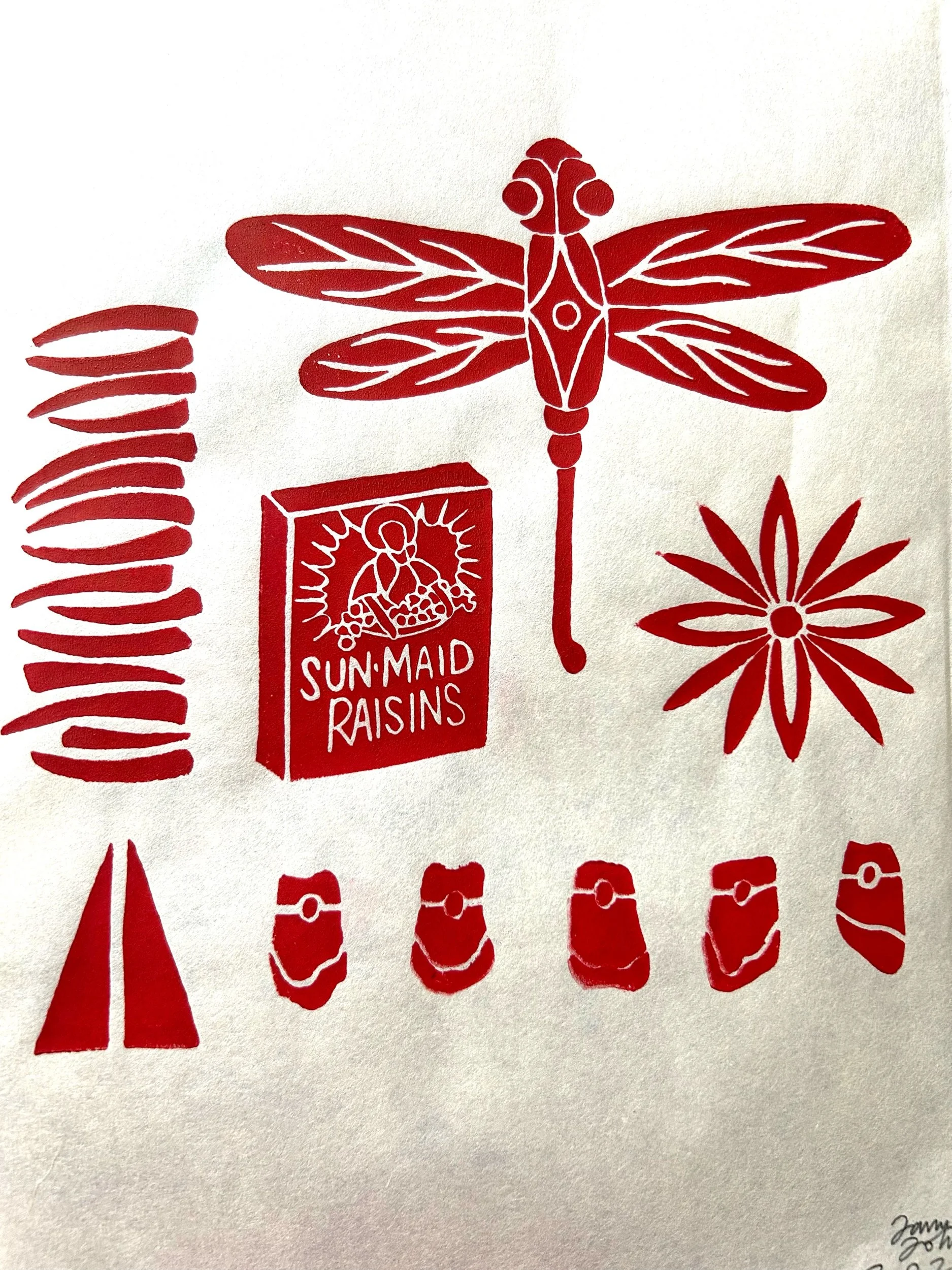 Block print on Japanese art paper, 9in by 12in